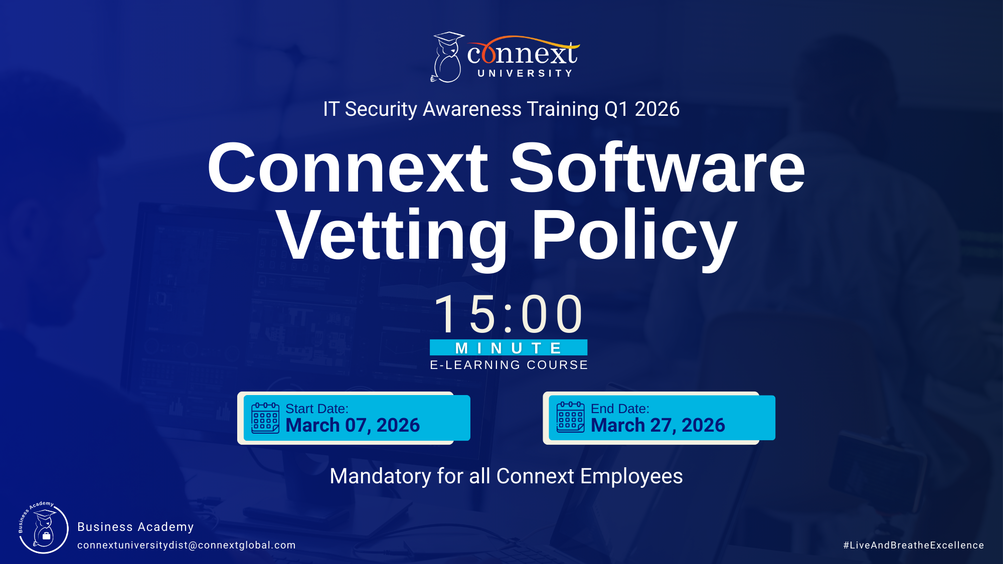 Mandatory: IT Security Awareness Training Q1 2026 – Connext Software Vetting Policy by Sydney Tatoy - Saturday, 7 March 2026, 7:08 AM Number of replies: 0 Permalink